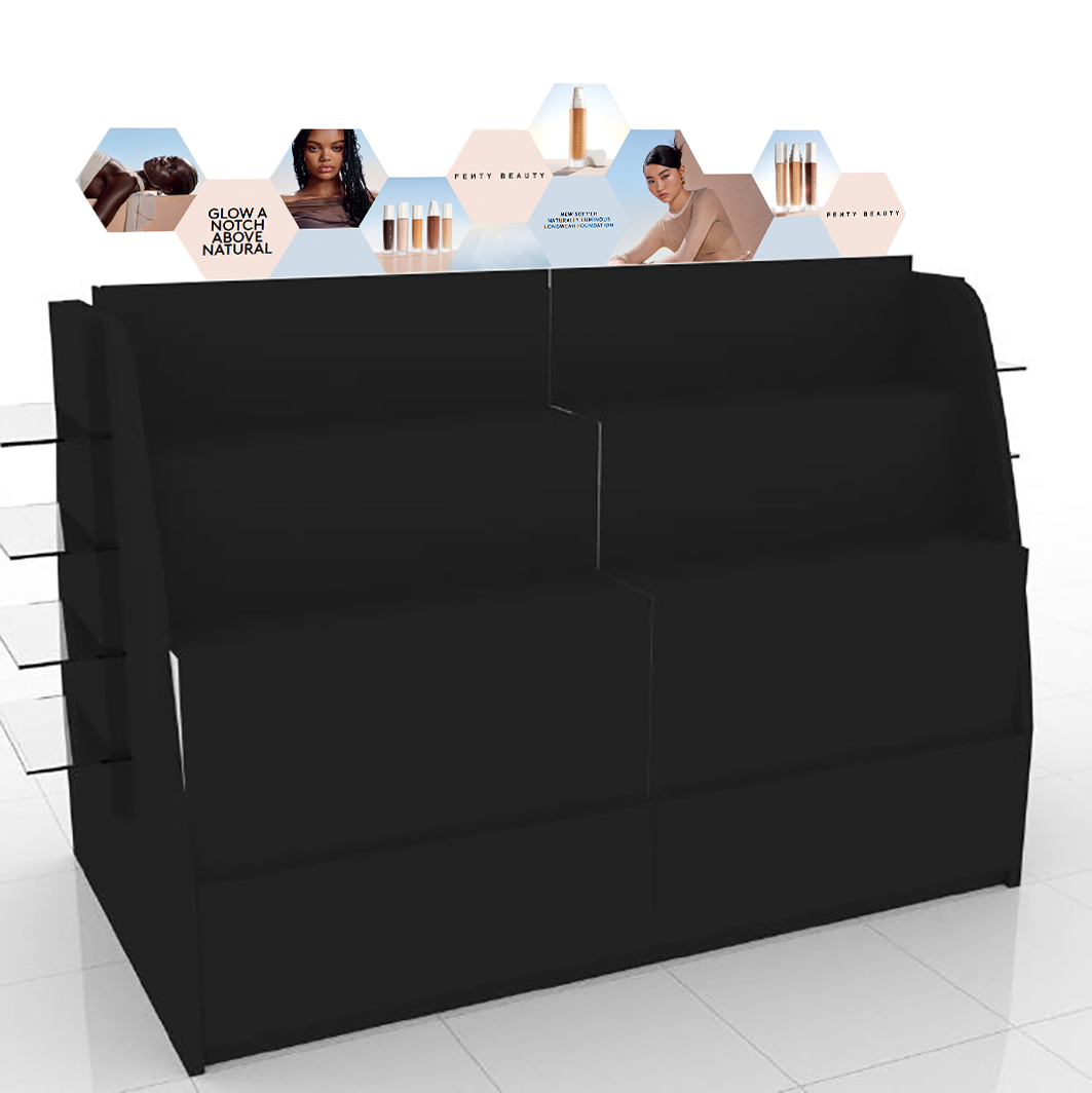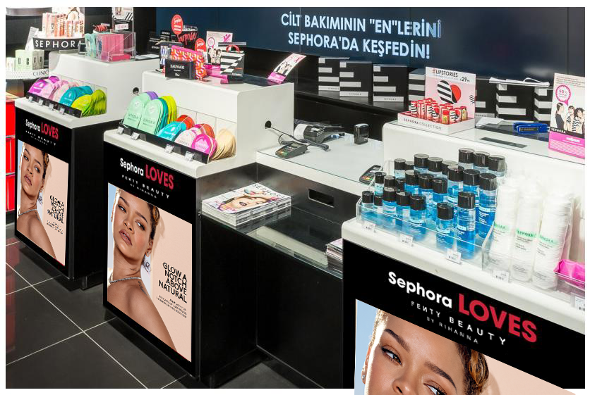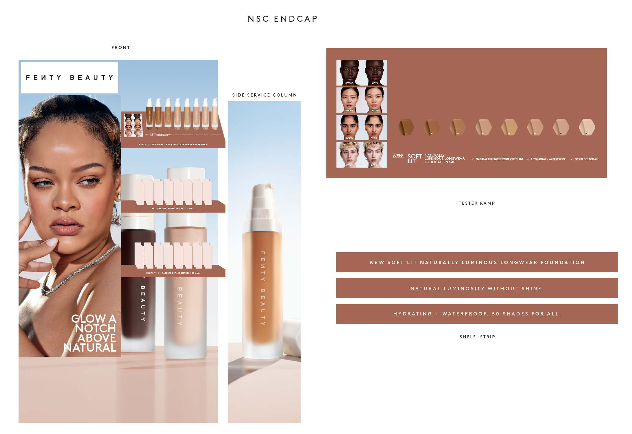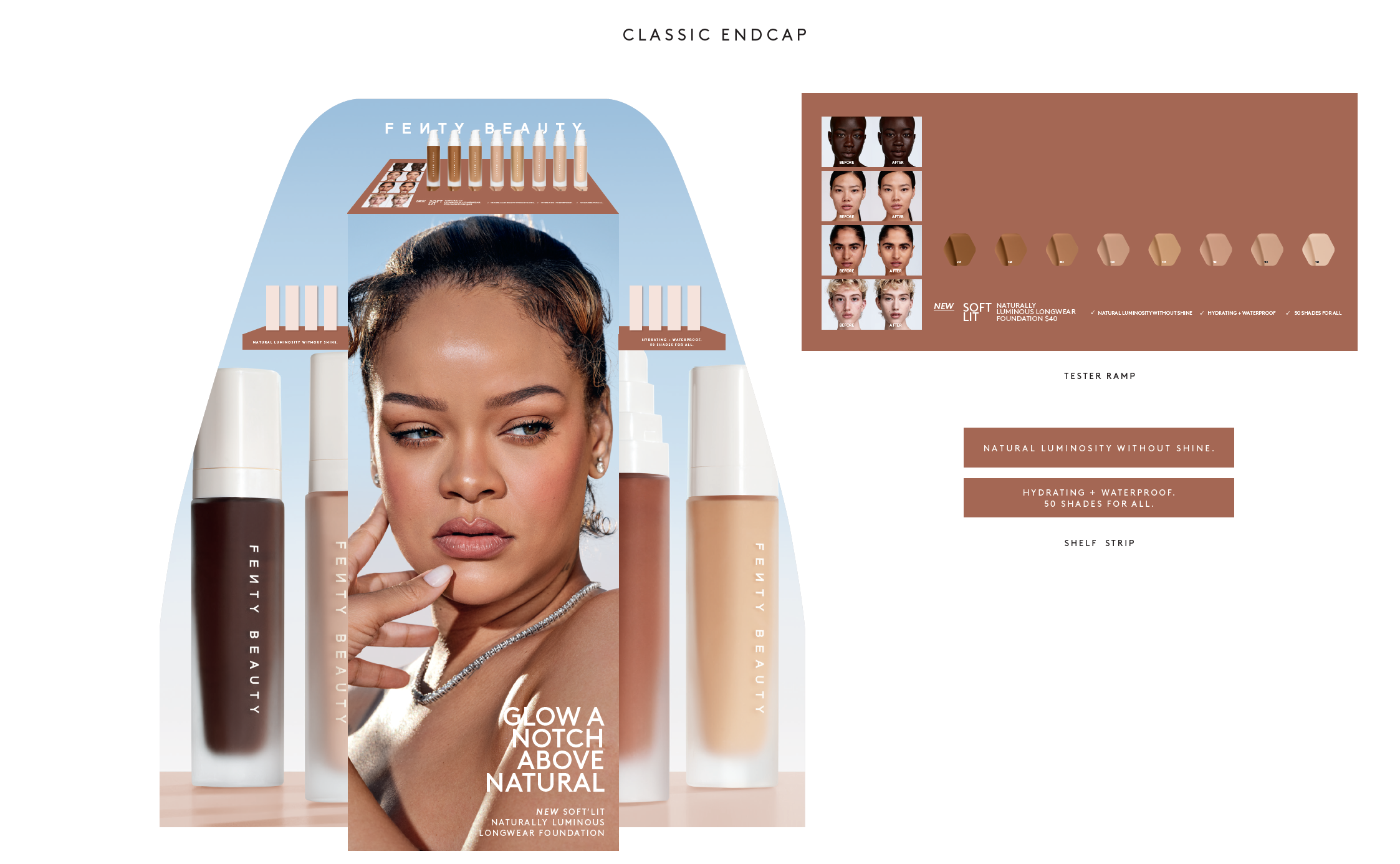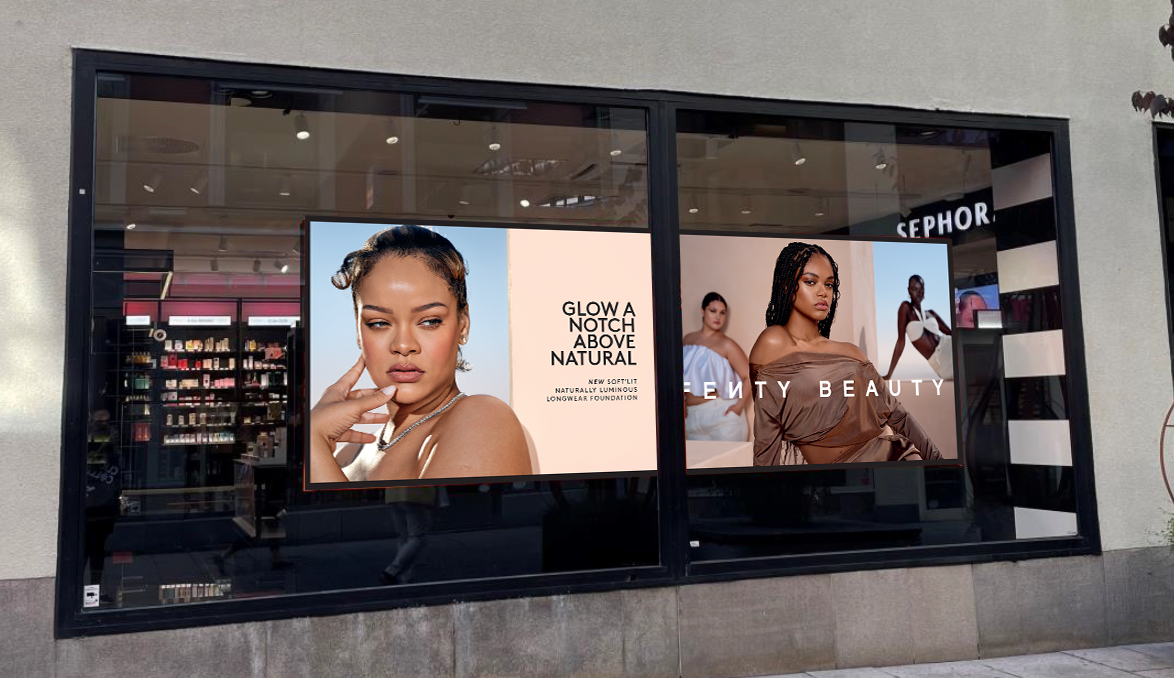 In-Store Sephora animations for the launch of Fenty Beauty Soft’Lit foundation including window graphics, gondola header, beauty studio, cash wrap animation and endcaps.